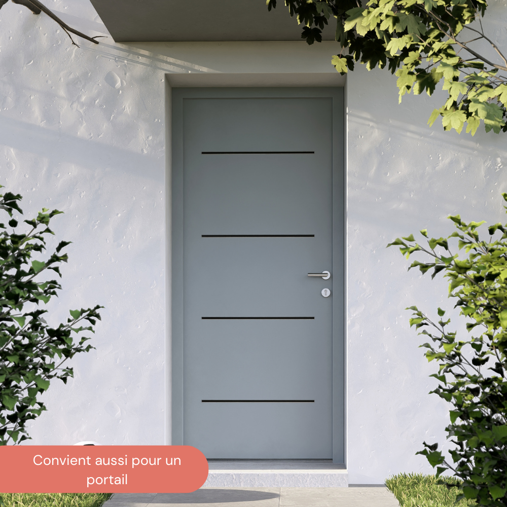 Avec le kit déco ALYRA, transformez vos portes, portails et portes de garage en éléments design et contemporains. Ses baguettes en aluminium laqué noir offrent une finition élégante et durable, facile à poser et résistante aux conditions extérieures. Une solution décorative simple et efficace pour moderniser vos fermetures.