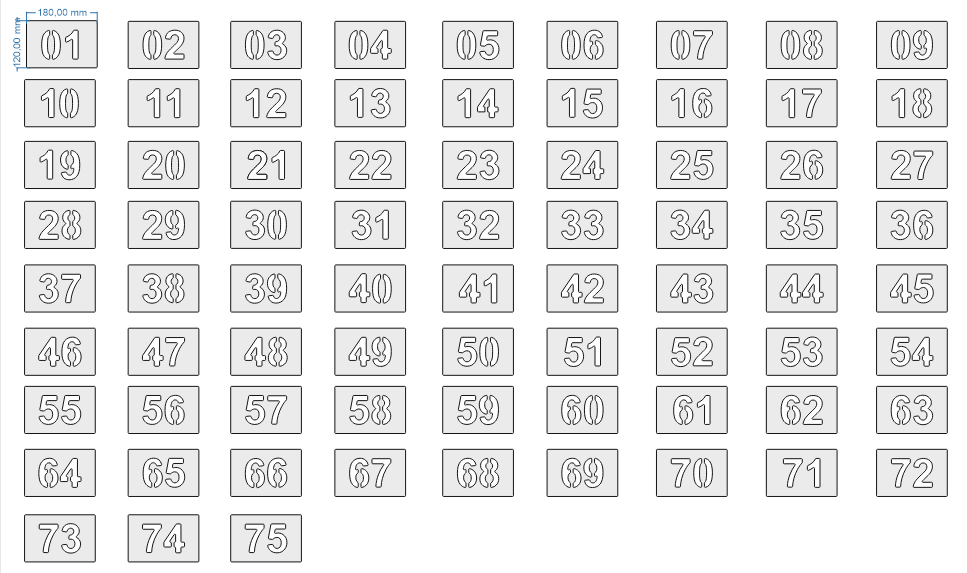 Chaque plaque intègre un numéro découpé de 01 à 75, soit un total de 75 plaques. Sur demande, les plaques sont livrées sans adhésif