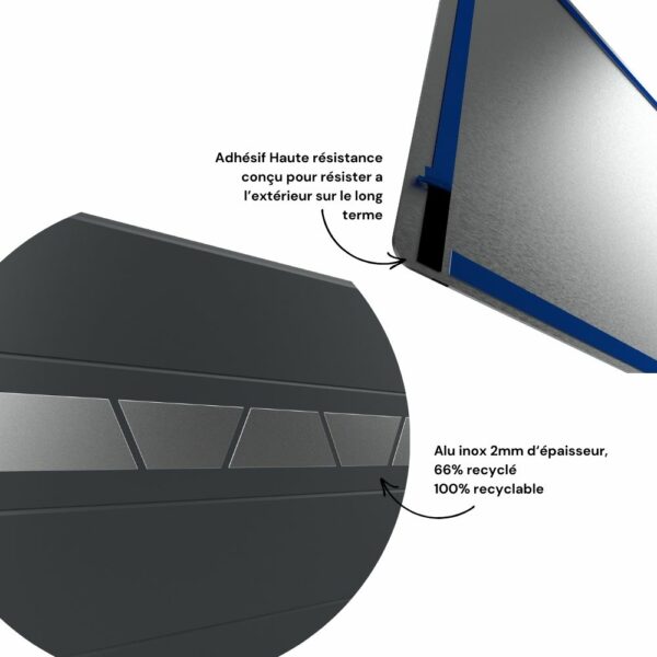 Le modèle Clément est un décor design à coller, conçu pour personnaliser votre porte de garage avec élégance. Fabriqué en aluminium inox brossé pré-adhesivé, il est spécialement traité pour une tenue optimale en extérieur, même dans des conditions climatiques difficiles. Ce modèle se distingue par ses lignes géométriques épurées, formant une demi-lune stylisée, idéale pour apporter une touche contemporaine et unique à votre garage.